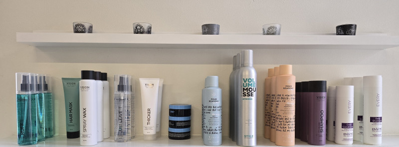 I salongen hittar ni hårprodukter från bland annat Dusy, D:fi, Four Reasons och Vision Haircare. Utbudet kan variera. Finns inte ditt favoritmärke eller favoritprodukt i salongen så tveka inte över att fråga. Till viss mån kan produkter beställas hem efter ditt önskemål.